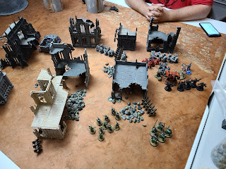 The Game Size was 24pts and they were playing the "Into the Valley of Certain Death" Scenario, which sees both armies attempting to move off the opposing table edge, through the enemy army and a table filled with dangerous terrain.